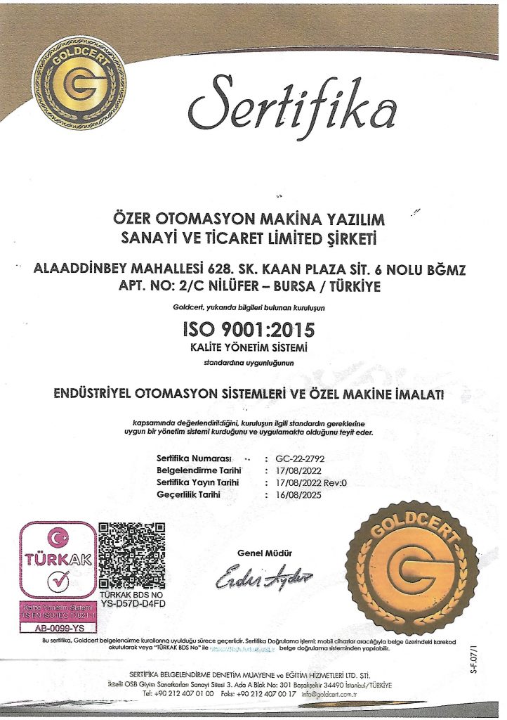 “Endüstriyel Otomasyon Sistemleri ve Özel Makine İmalatı” alanında faaliyet gösteren firmamız kuruluşun amaç ve bağlamına uygun ve stratejik yönünü destekleyecek şekilde kalite yönetim sistemini en üst düzeye ulaştırabilmek için aşağıdaki hususlar doğrultusunda politikasını belirlemiştir.